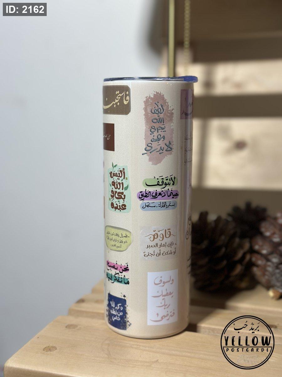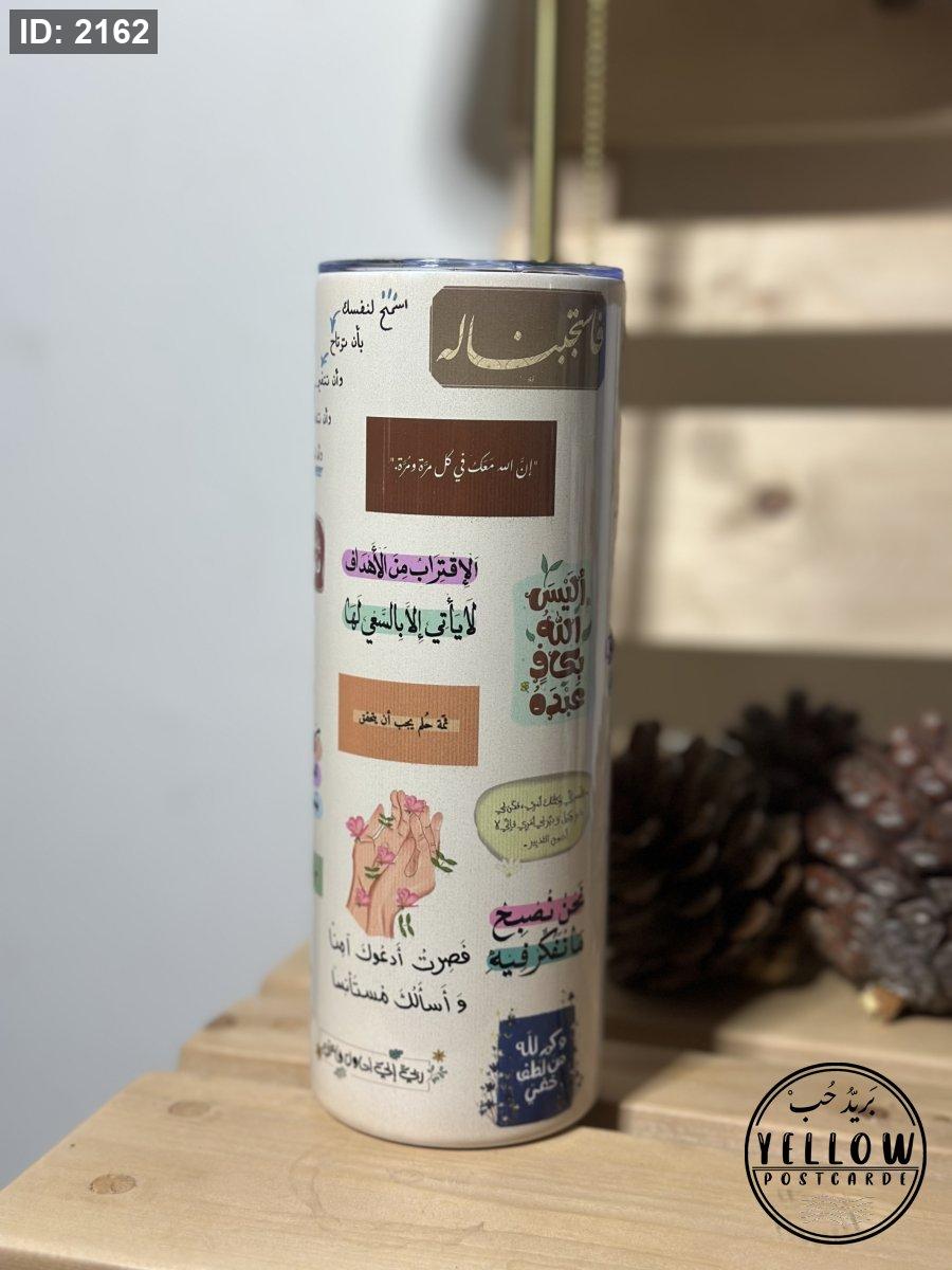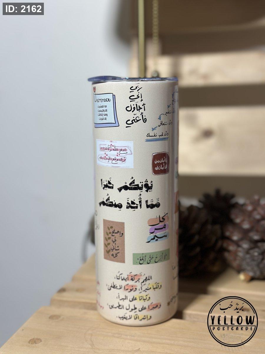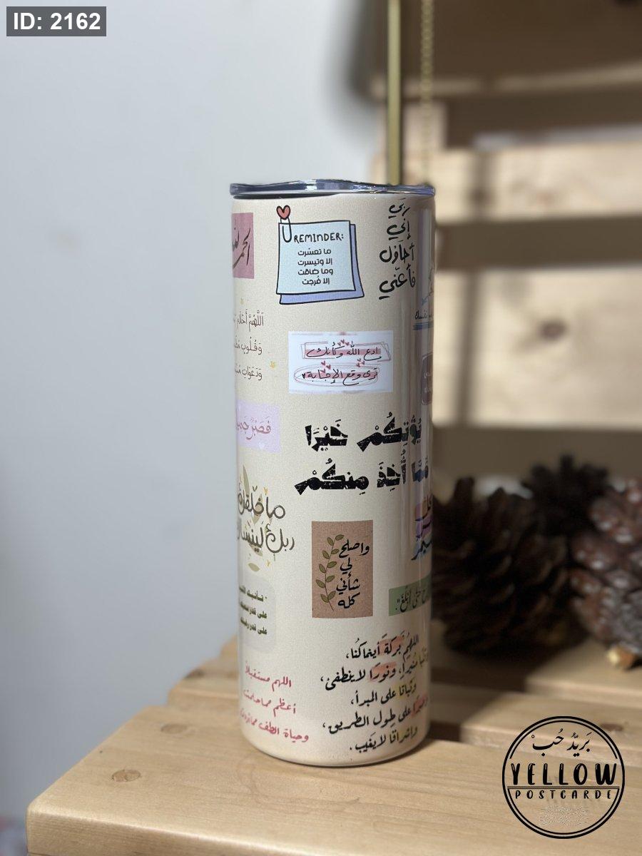كوب حراري يحفظ البرودة والسخونة 2-4 ساعات مصنوع من الستانلس، طباعة قوية وثابتة لا تتاثر ، 600 مل ، معها مصاصة من الستانلس.