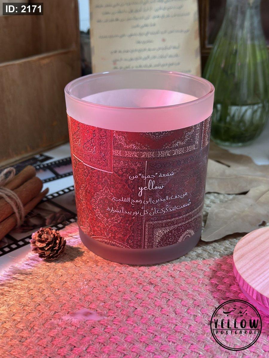 شمعة عطرية فاخرة ، مصنوعة يدوياً بجودة فائقة ، باللون الاحمر القاني ، بتصميم جمرة بالسجاد العجمي ، متوفرة بحجمين بامكانك الاطلاع عليها في الخيارات .