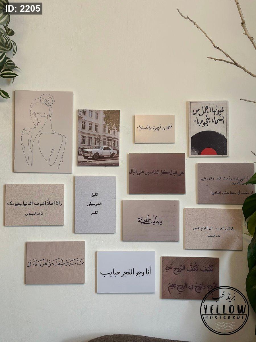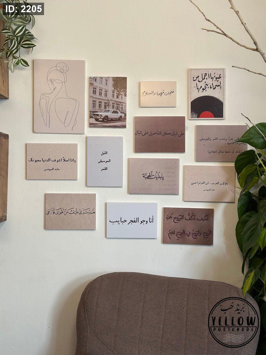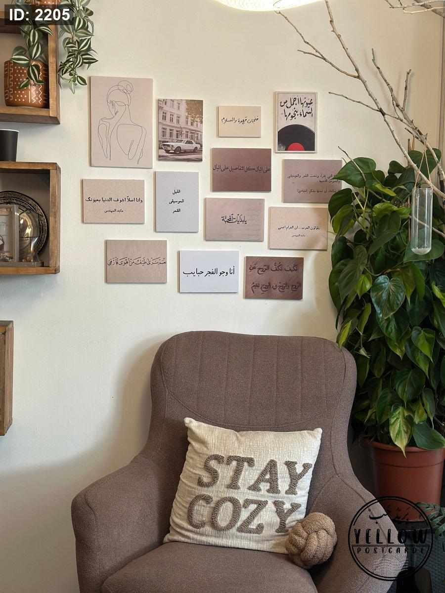 جدارية كلمات وعبارات بتصاميم هادئة وألوان ناعمة، تعبّر عن مشاعر مختلفة وتفاصيل يومية.