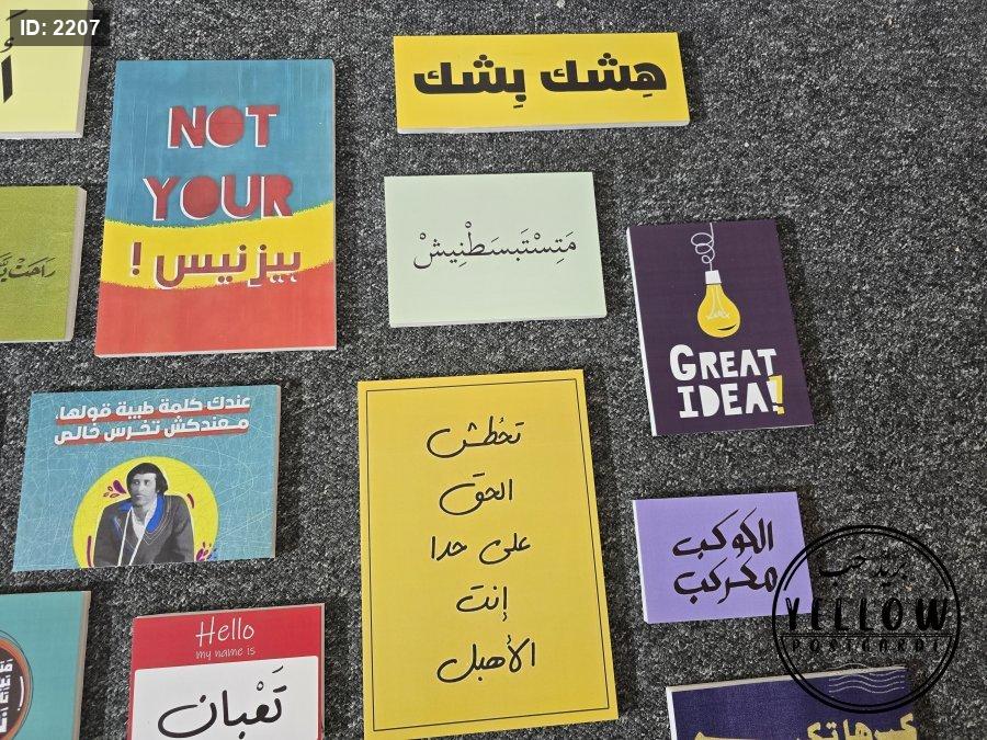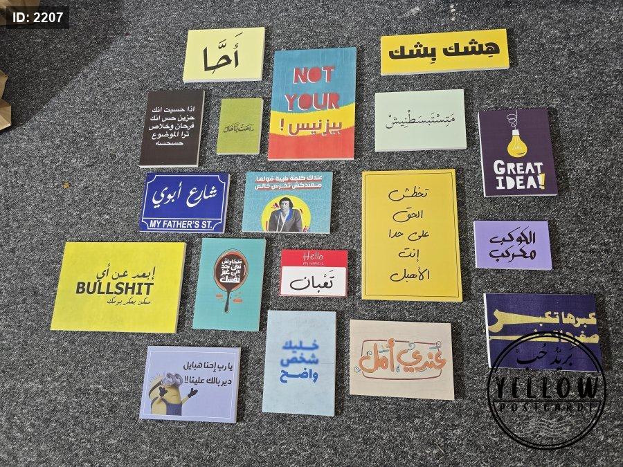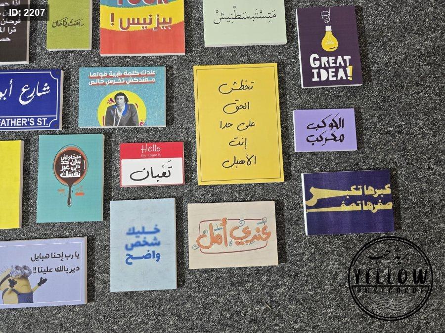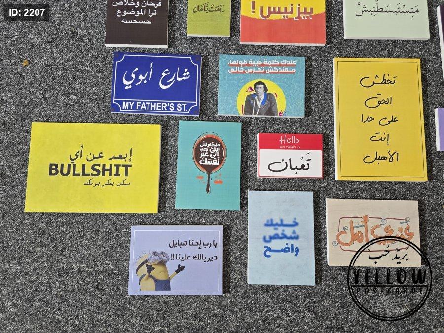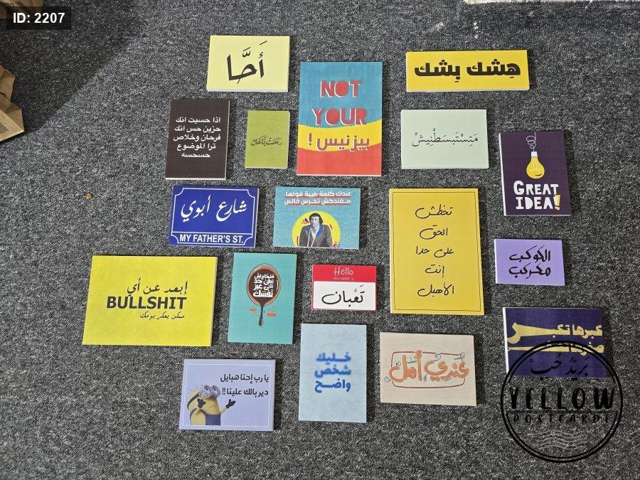 مجموعة لوحات ملوّنة تحمل عبارات باللهجة العامية وأسلوب عصري، تمزج بين الطرافة والتحفيز والسخرية بذكاء.