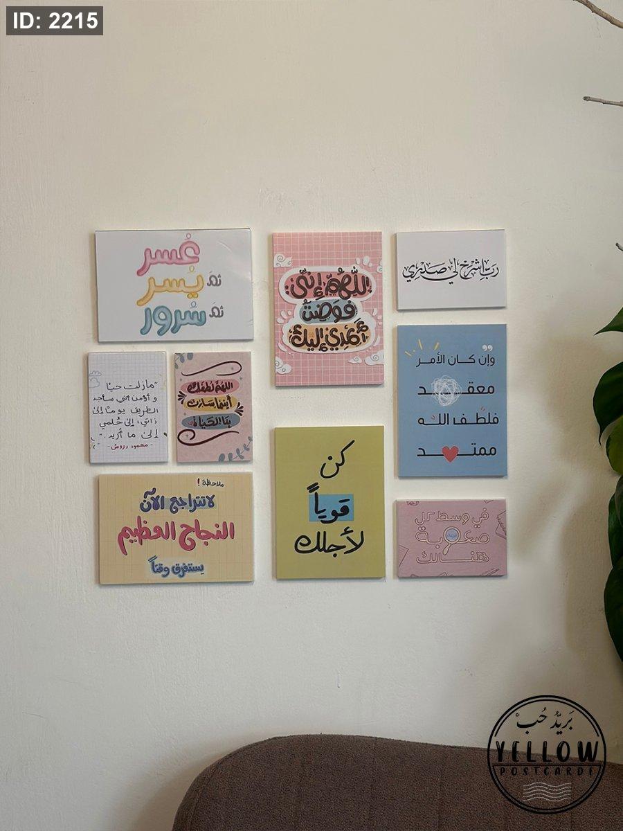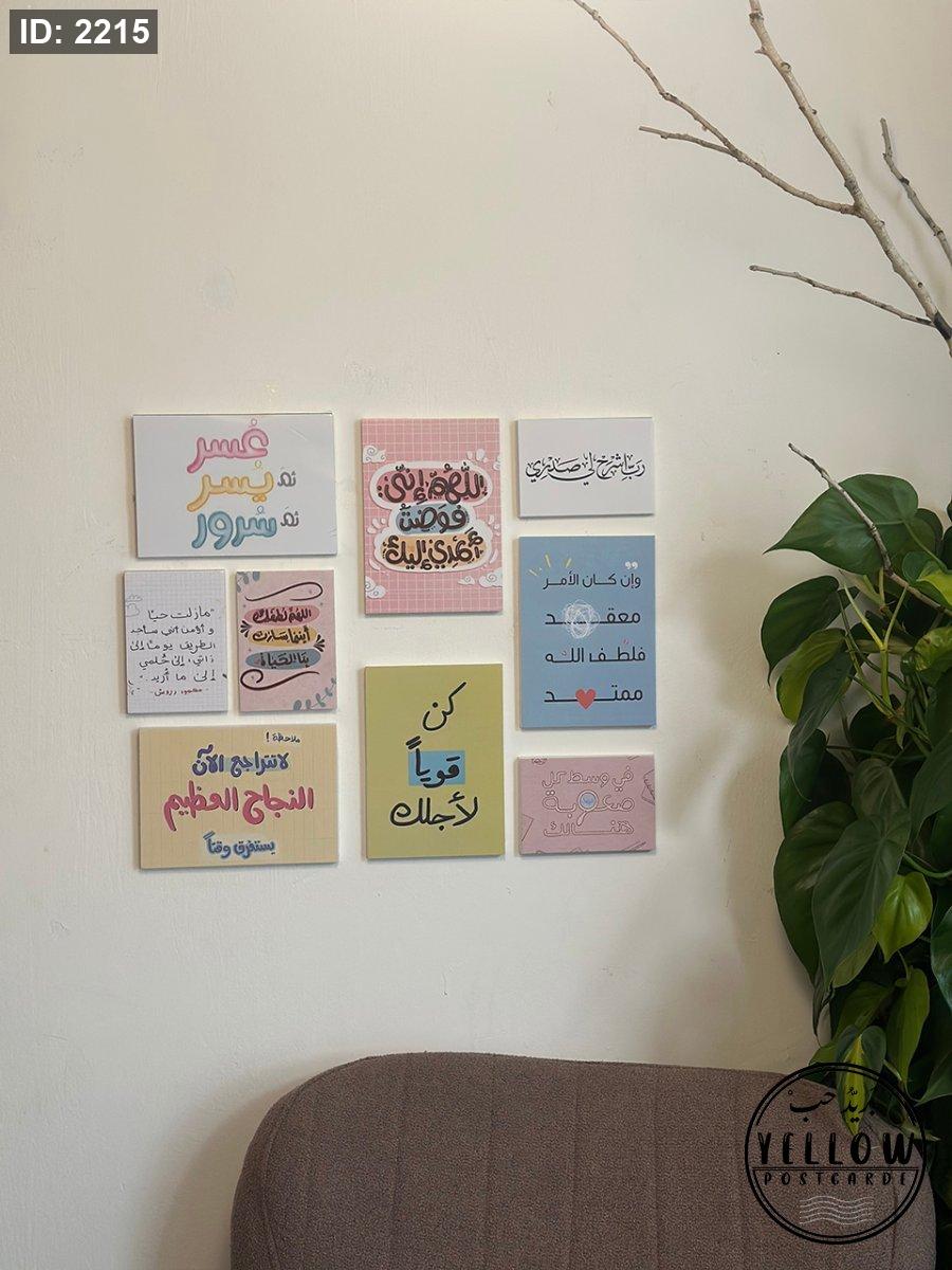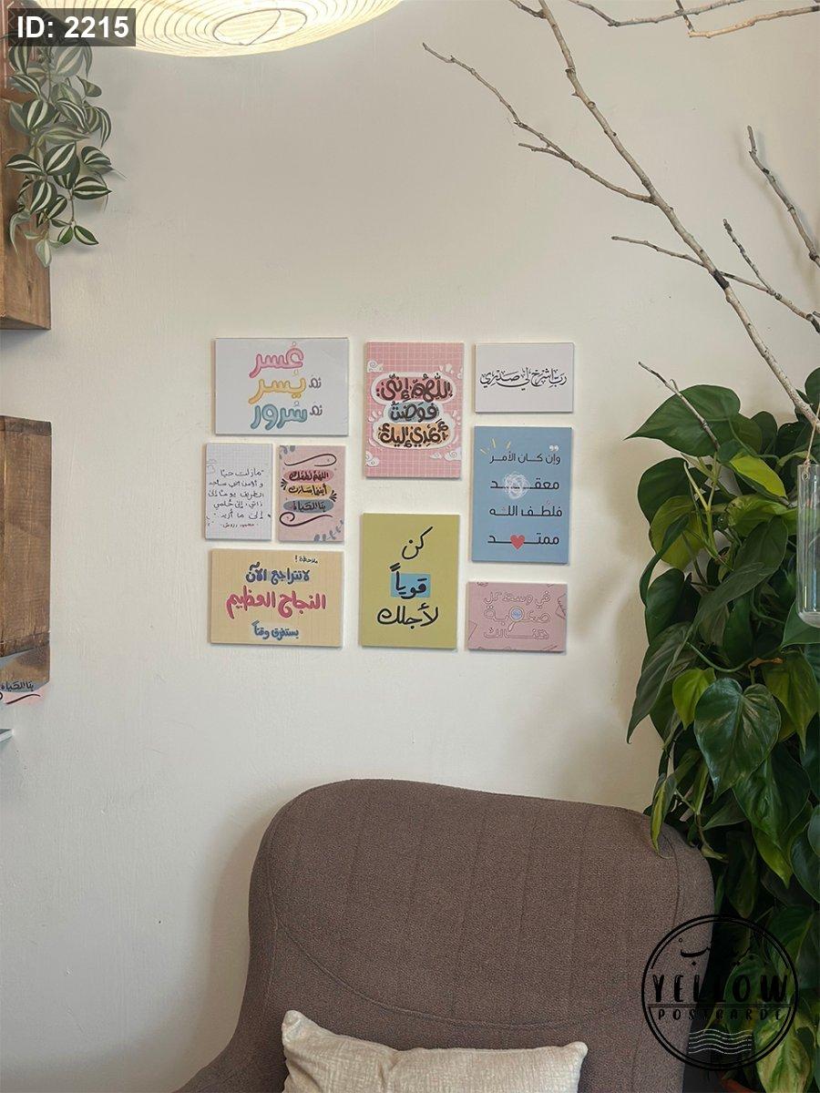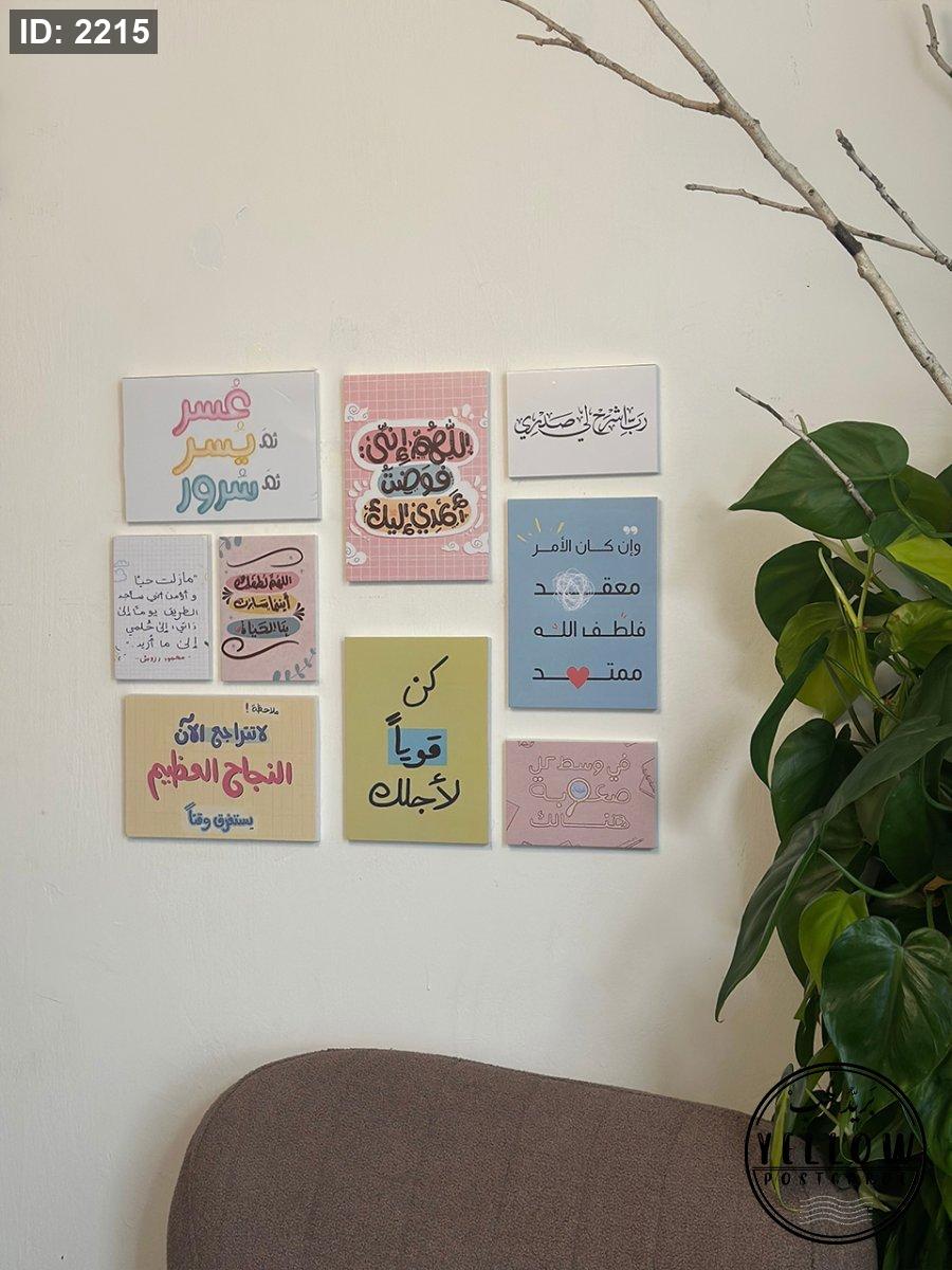 مجموعة لوحات بتصاميم لطيفة وألوان ناعمة تحمل رسائل إيجابية ومشجعة. الجدارية تركّز على كلمات تدفع للأمل، الصبر، الثقة بالنفس، وتذكّر بلطف أن لكل تأخير خير، ولكل تعب ثمرة.