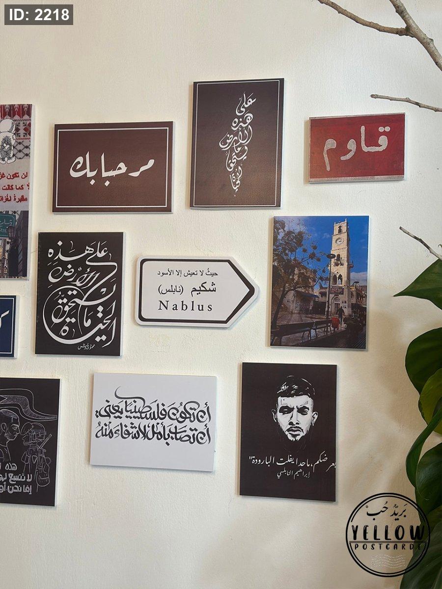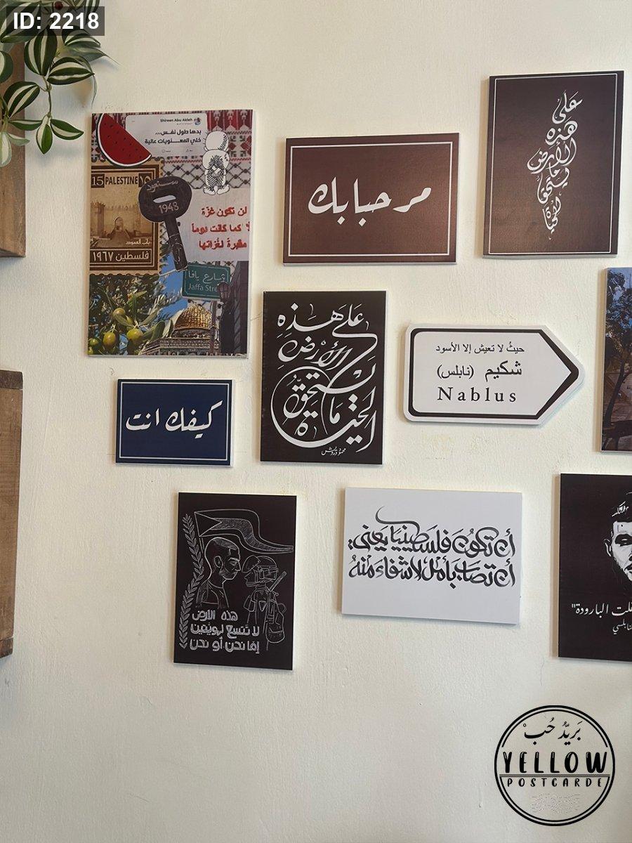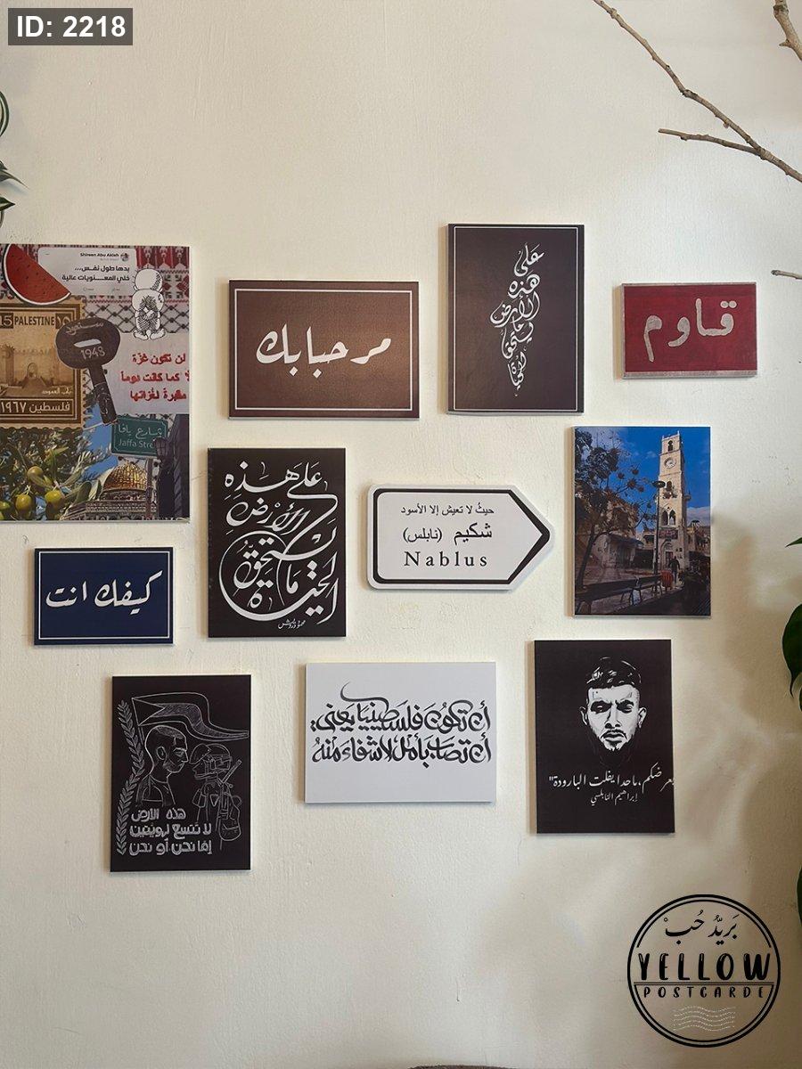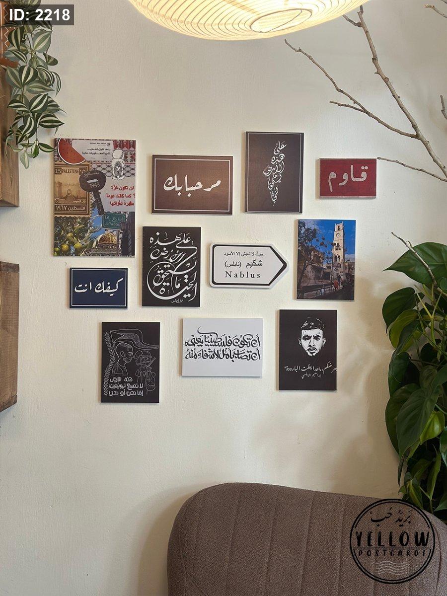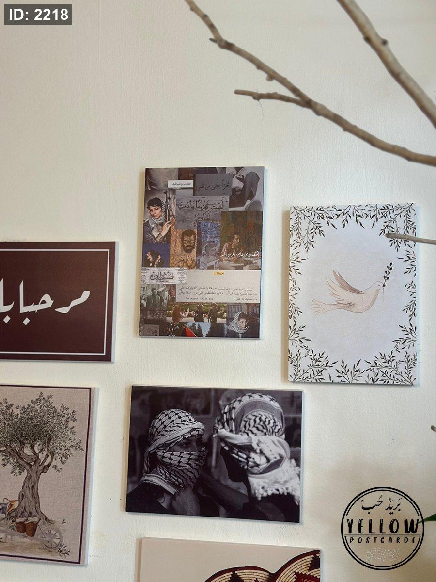 جدارية مكوّنة من مجموعة لوحات فنية تعبّر عن فلسطين، المقاومة، والهوية، بتصاميم قوية وعبارات محفّزة.