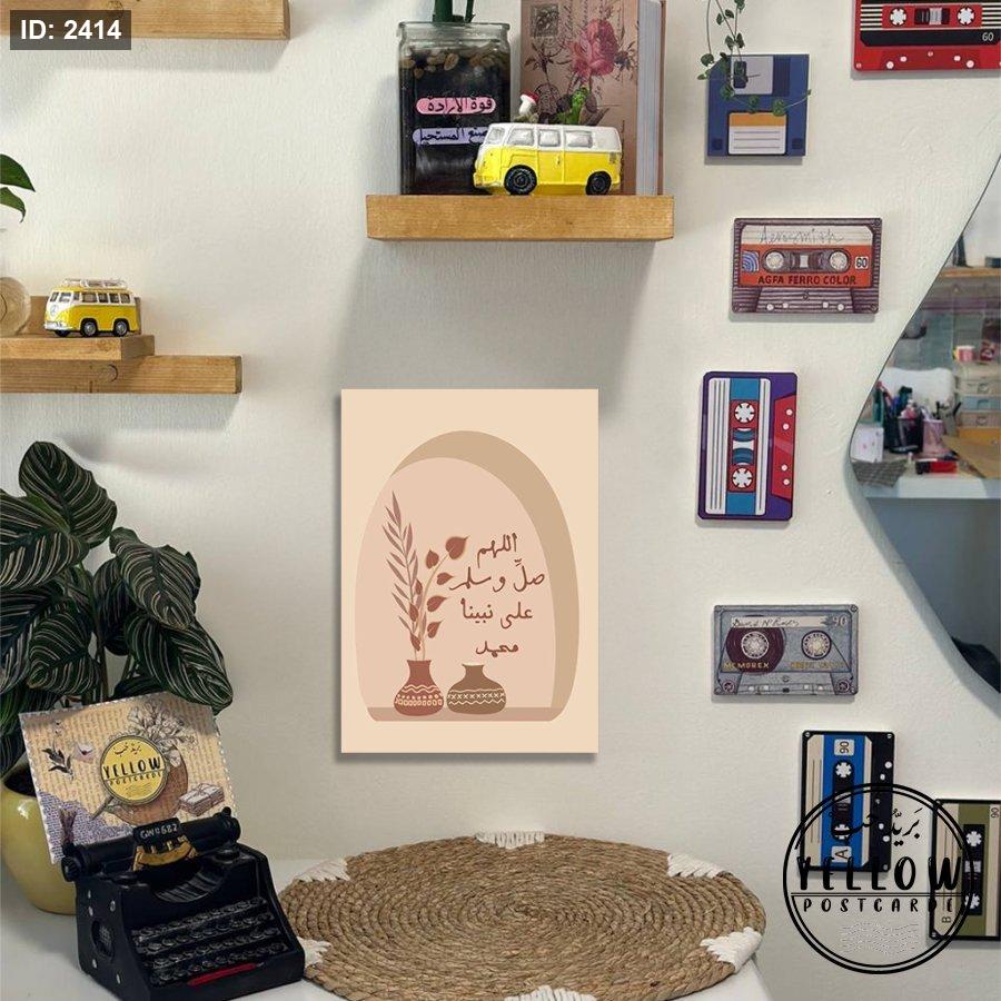 لوحة ديكور لون بني وبيج اللهم صل وسلم على نبينا محمد