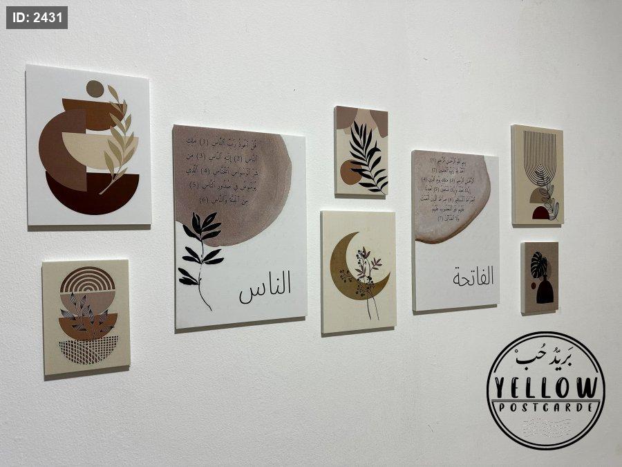 مجموعة لوحات جدارية مستوحاة من سور وآيات من القرآن الكريم بتصميم عصري وألوان هادئة، تضفي أجواء من الطمأنينة والسكينة وتمنح المكان لمسة روحانية أنيقة تناسب مختلف المساحات.