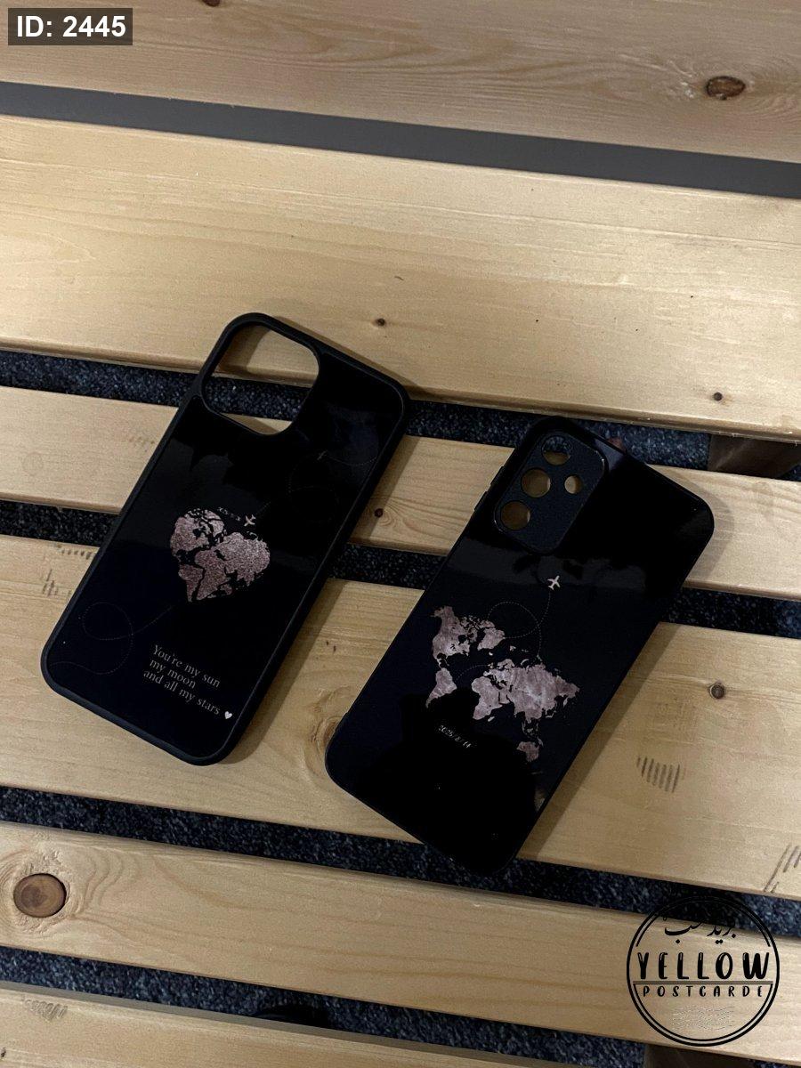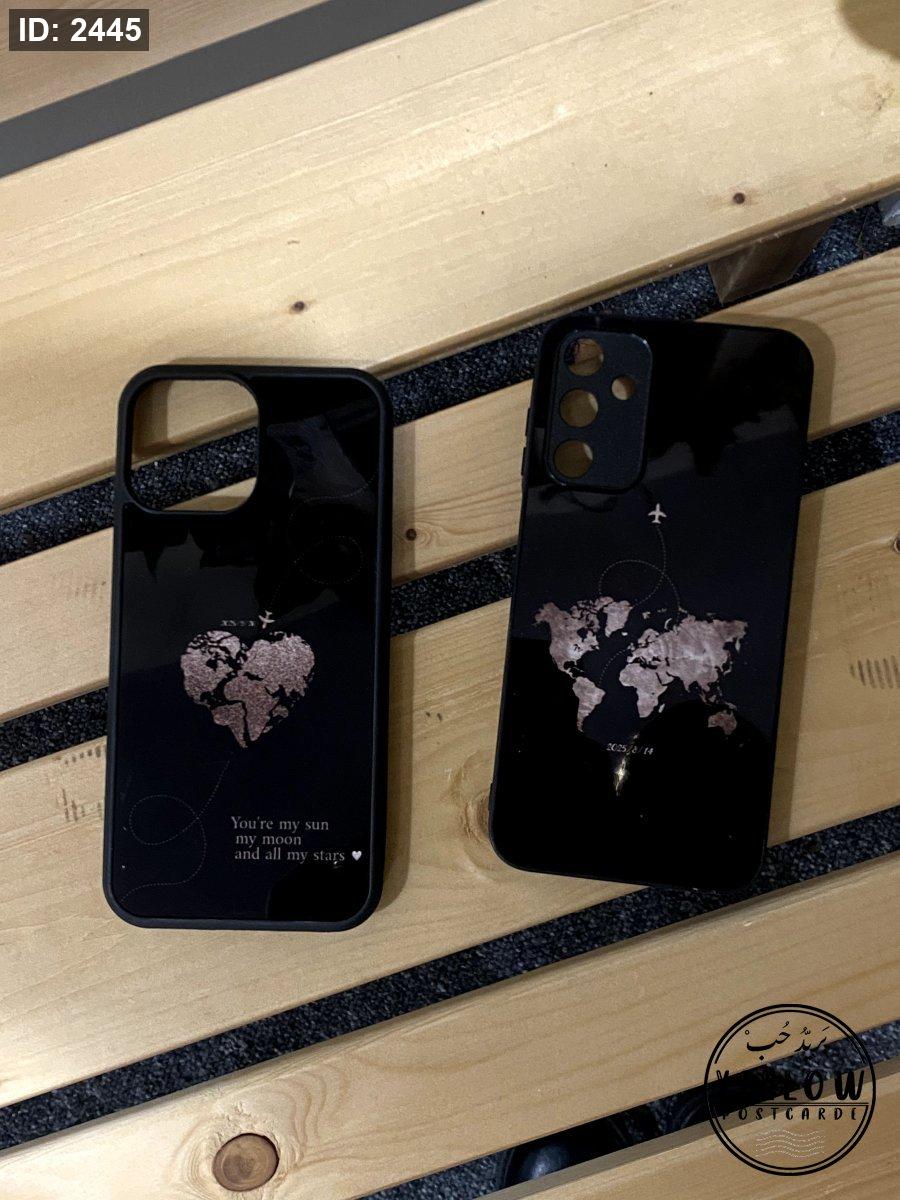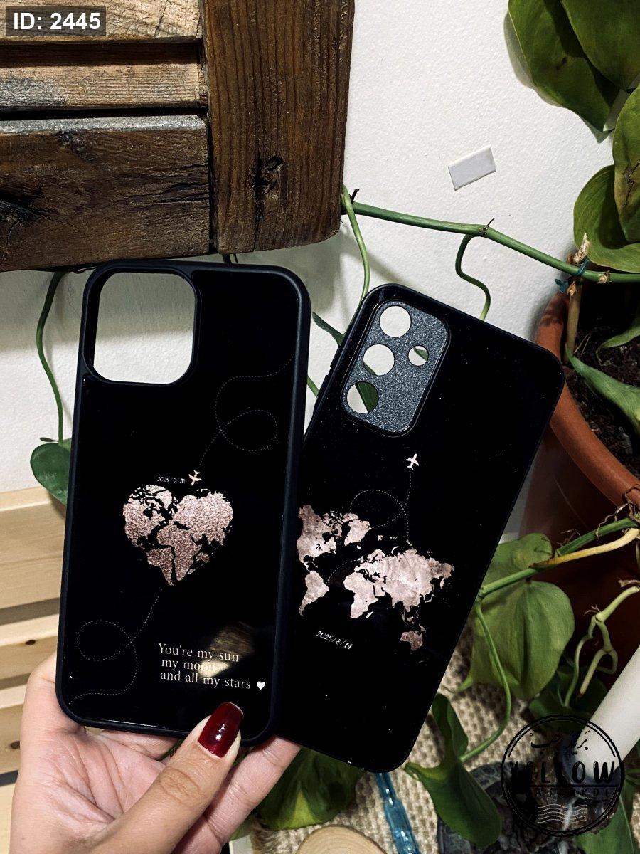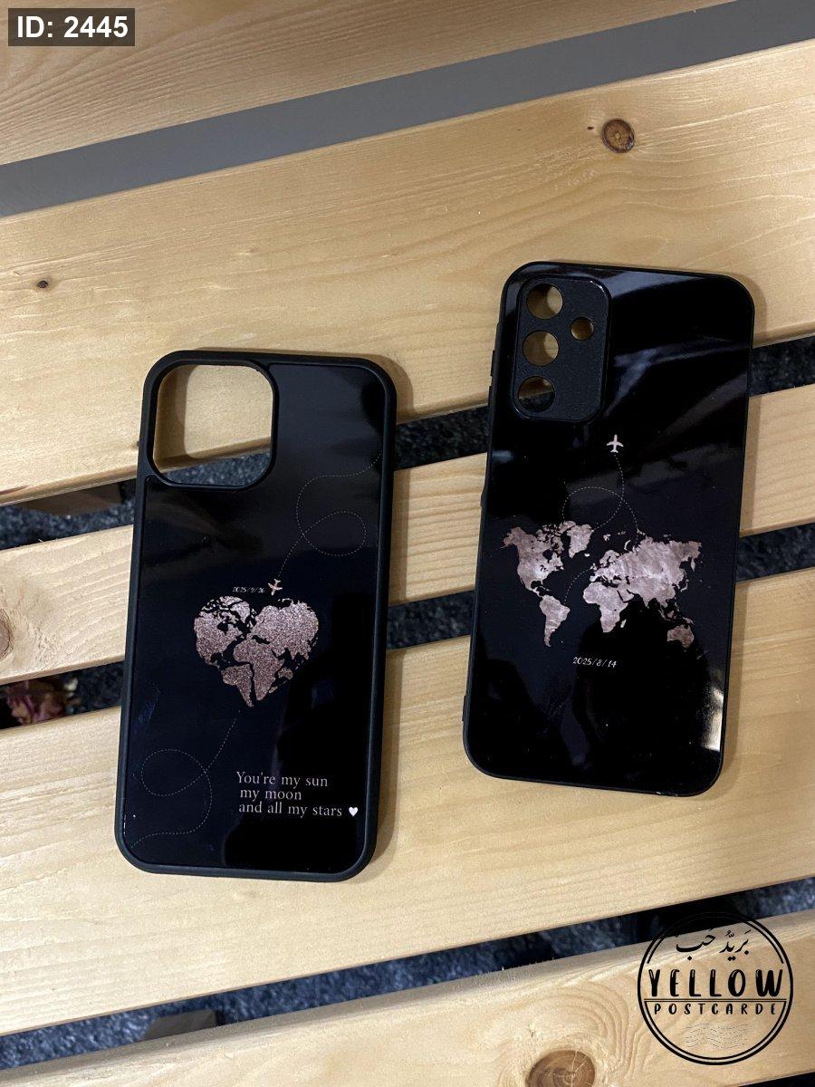 تصميم أسود فاخر بخريطة العالم على شكل قلب